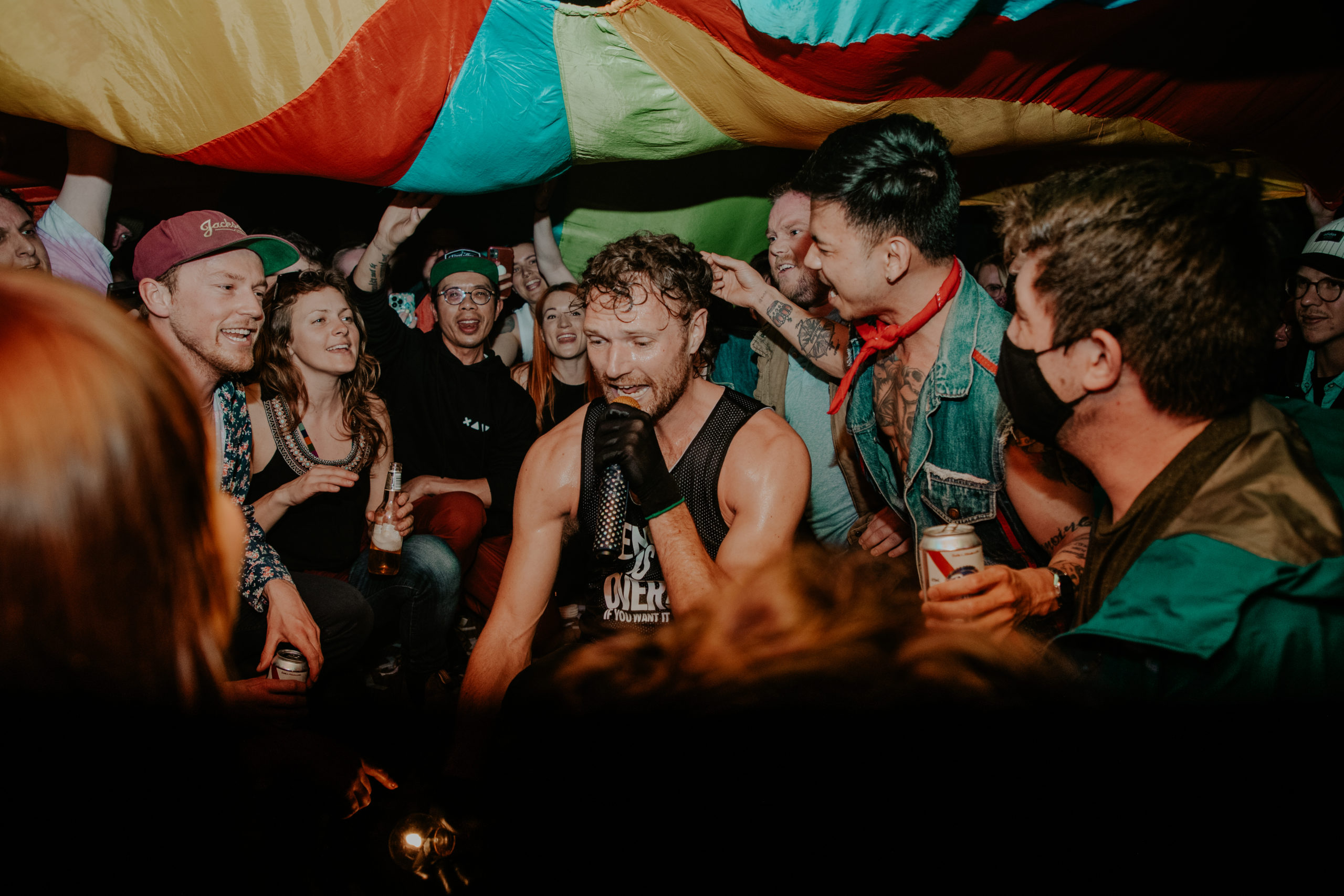 There were no flashy visuals, extra smoke, or gimmicky effects in this show, only a couple of lights, a drummer, a parachute, a passionate musician who really knew how to engage a crowd, and a crowd that was ready for a good time come what may.